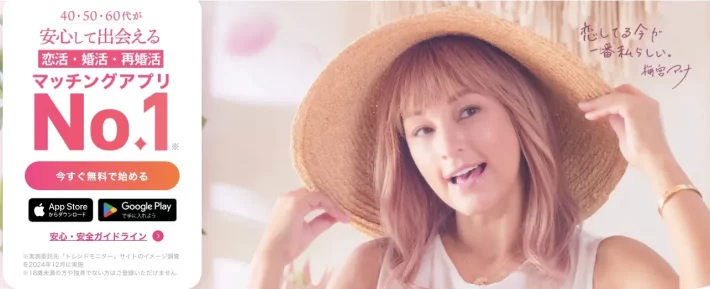 今回の調査で判明した再婚活・バツイチの出会い向けマッチングアプリをランキング形式で掲載しています。